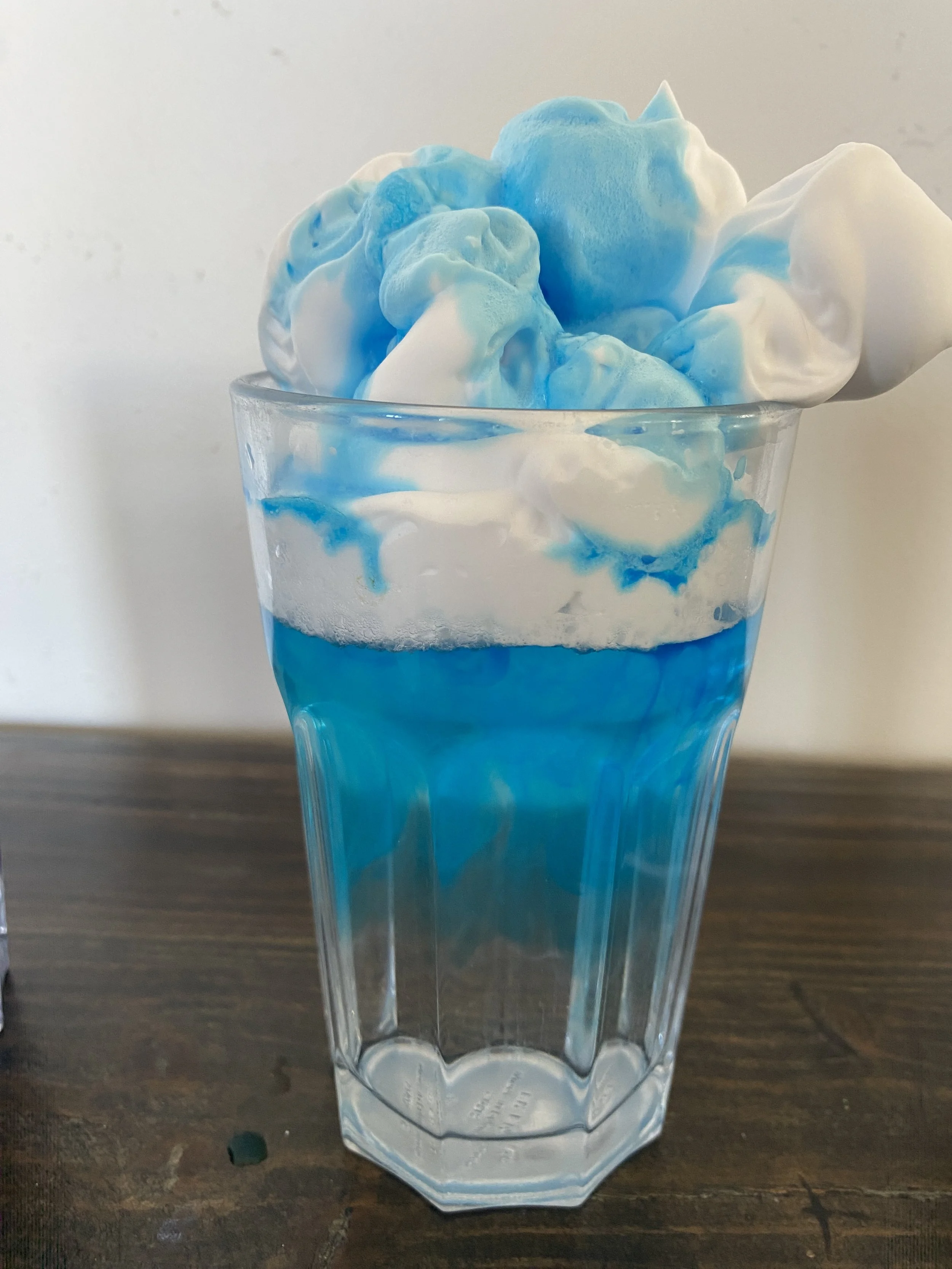 Spray a fluffy layer of shaving cream on top of the water to create the “cloud.”