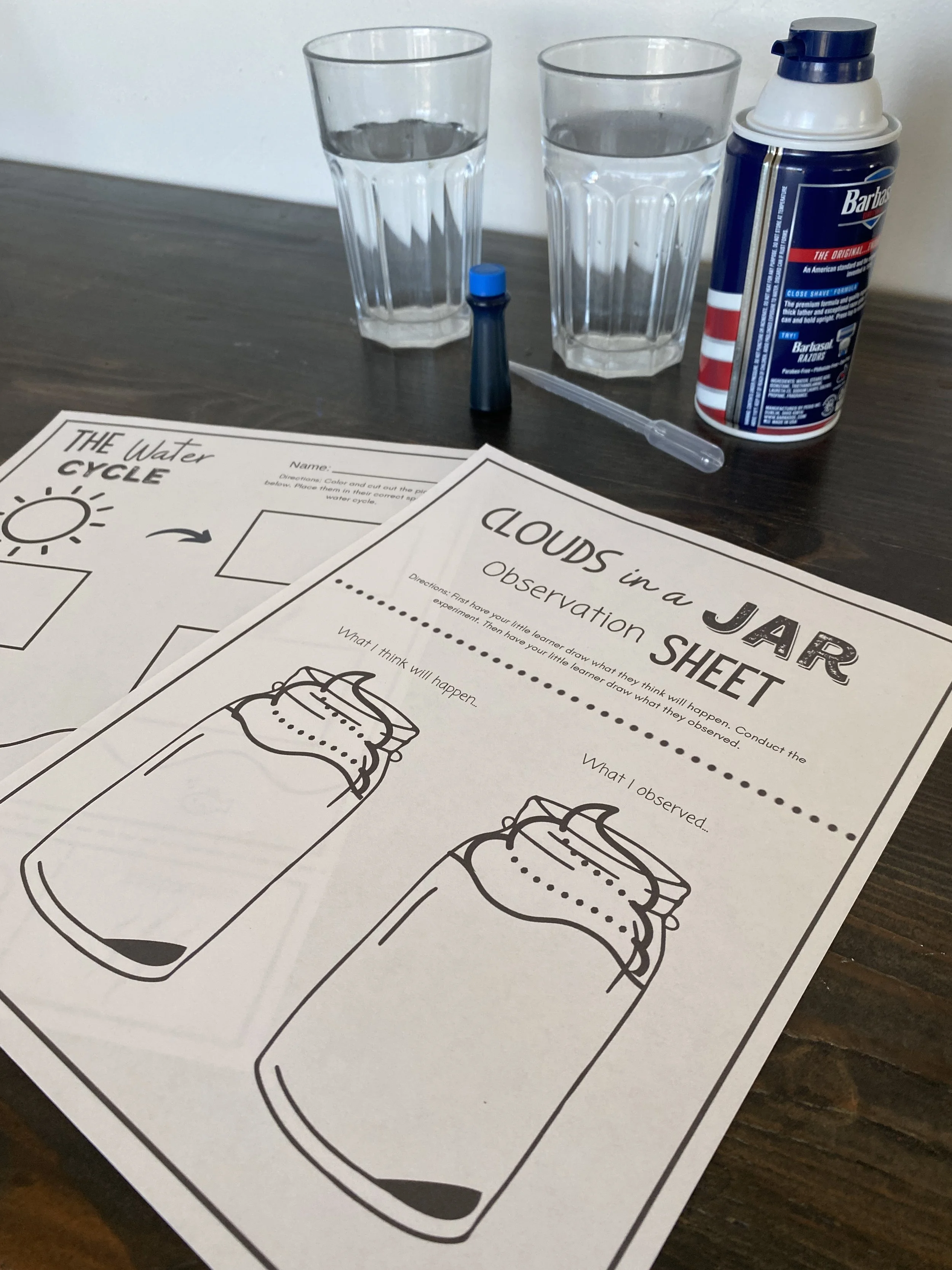 Clouds in a Jar printable lesson plan and recording sheet (find it here!)