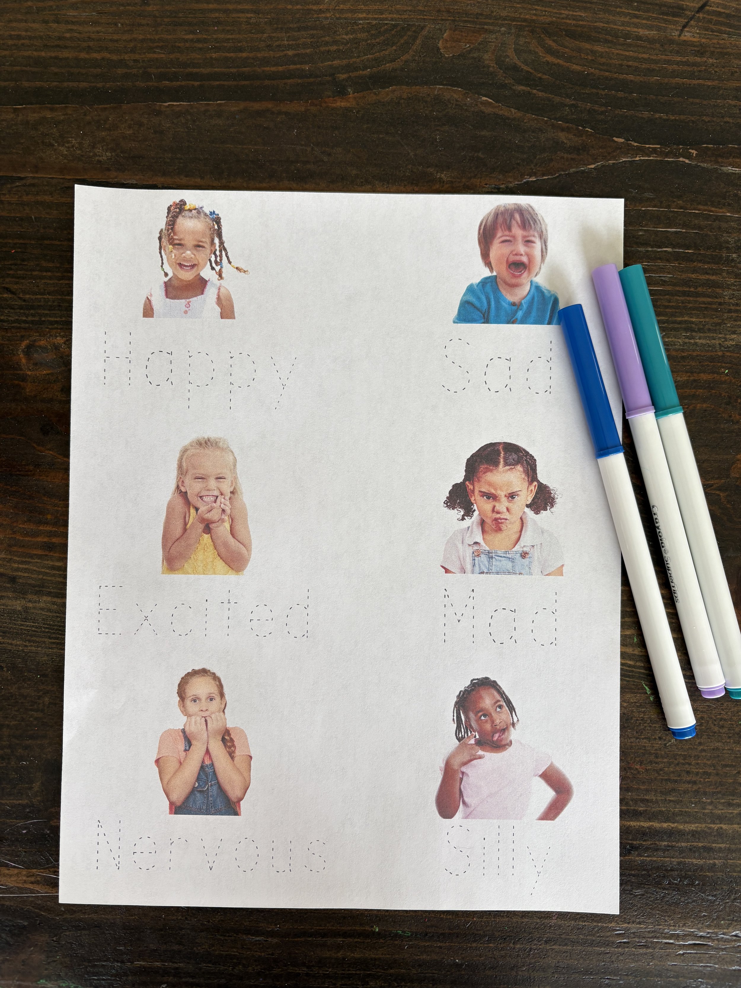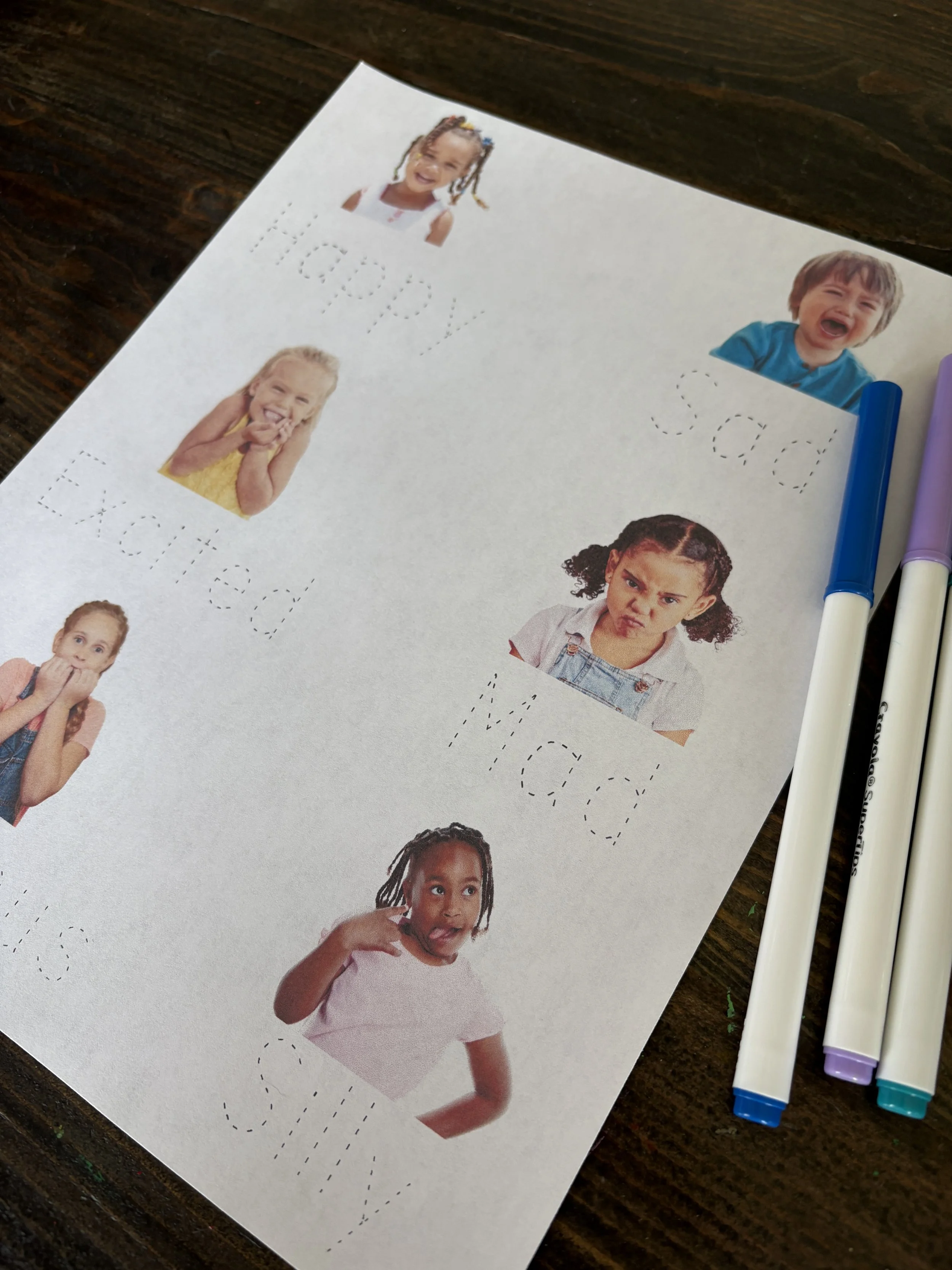 Helping preschoolers understand emotions is an important part of their development, and we have a fun free download to help! We have created a tracing sheet that features real photos of children showing different emotions and paired with the word for each feeling for the child to trace. Our Emotion Words Tracing Sheet helps them connect what they see with what they feel. Be sure to scroll down to get the free download!