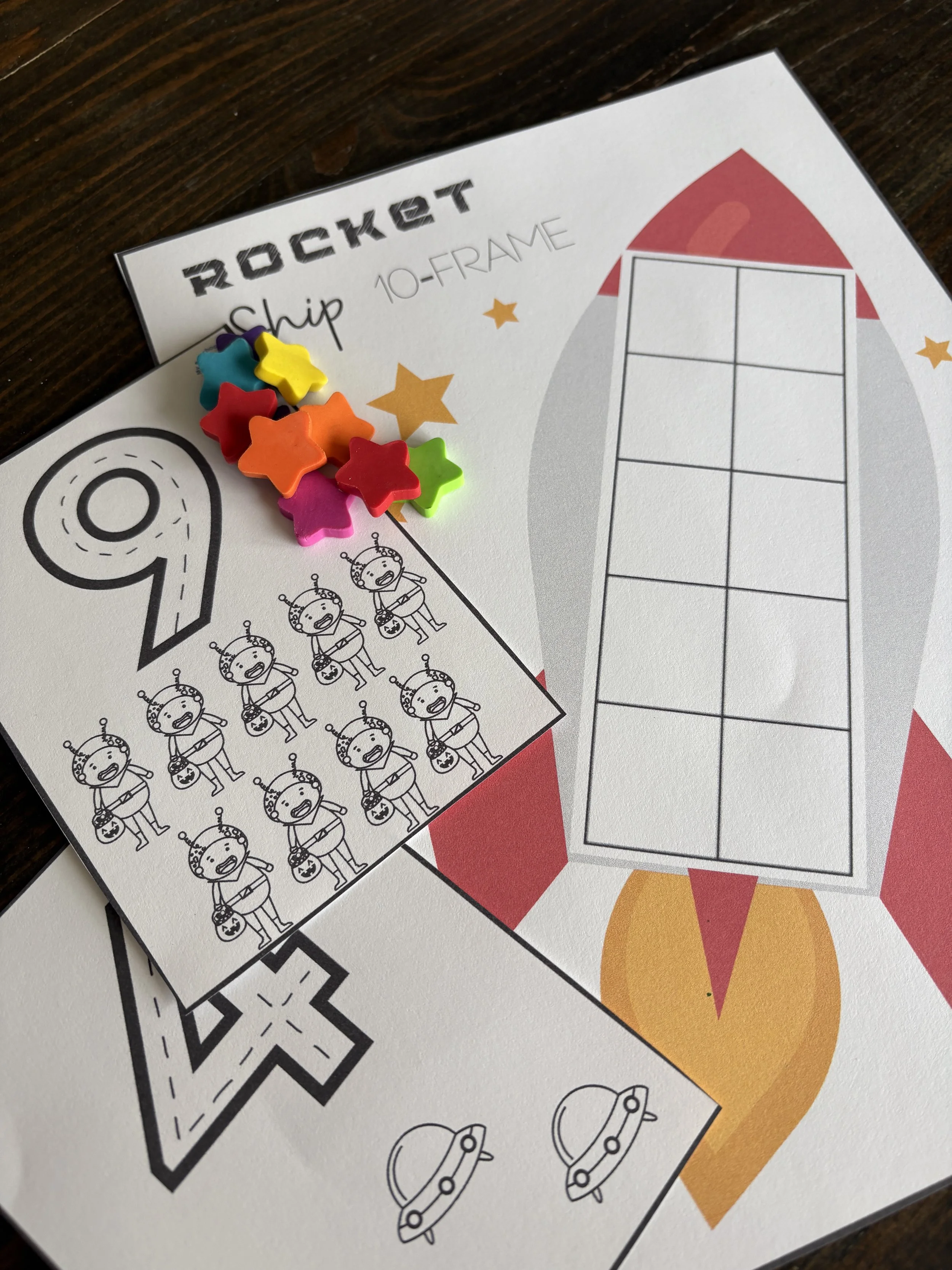 Today we have the cutest and easiest math activity for your space-loving child! Our Rocket Ship 10 Frame Space Math Activity is so fun and so easy to do, just print, cut, and go! You can find the printables in our shop, and be sure to keep reading for more details!