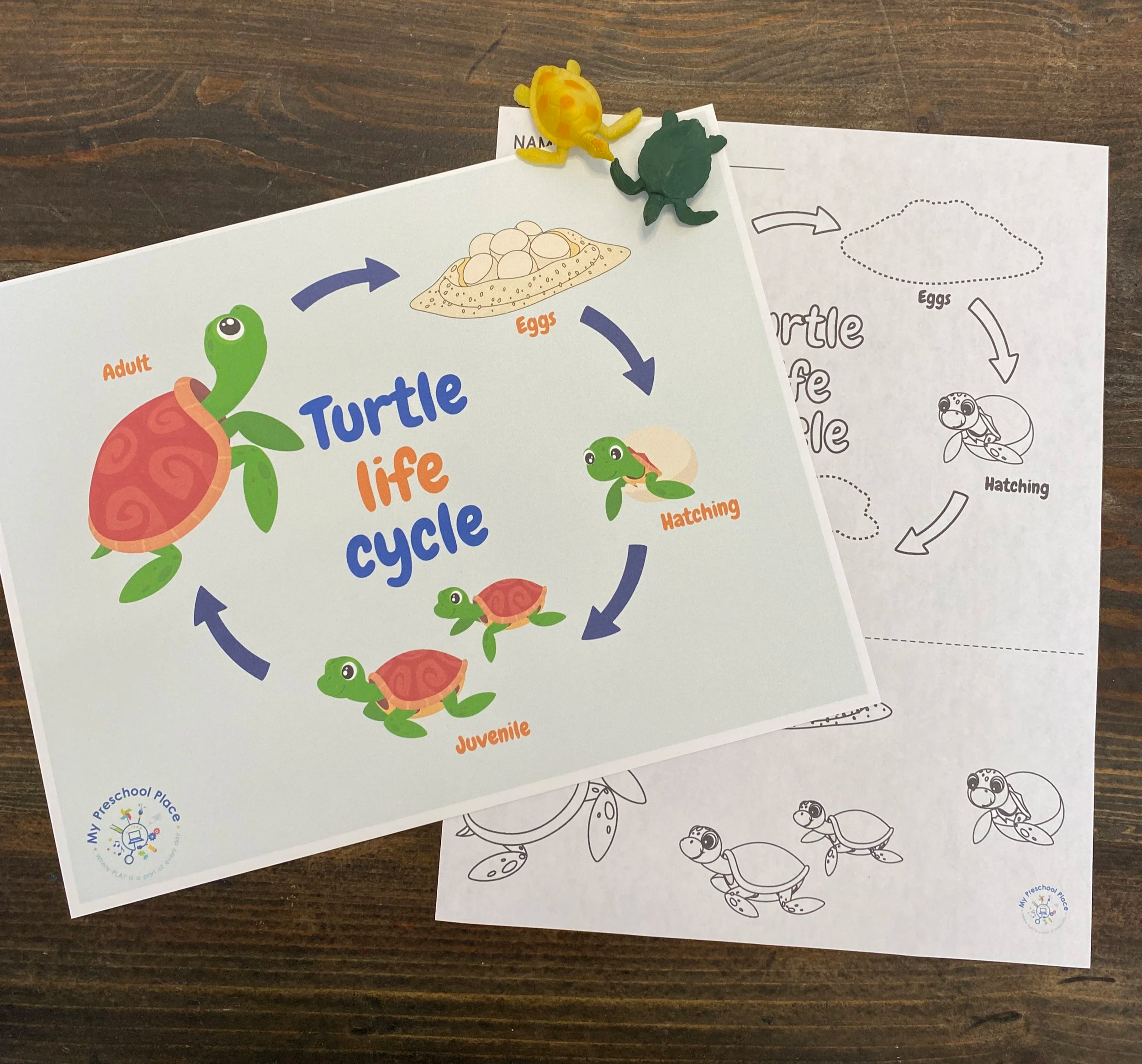 Are you looking for a low prep but educational science activity to do for your ocean preschool unit? We have just the thing! Our Sea Turtle Life Cycle Activity is easy to download, print, and start learning. You can find it in our shop, and be sure to keep reading for all the details.