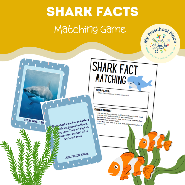 For preschoolers, matching activities like this support important early learning skills. Children practice visual discrimination as they study the shark pictures, listening and comprehension skills as they hear or read the facts, and critical thinking as they decide which fact belongs with each shark. The simple matching format in our Shark Facts Matching Game keeps the activity developmentally appropriate while still introducing real science content.